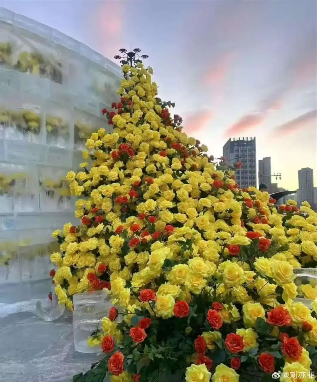 Recently, Harbin's "Frozen Yellow Rose" has become a new winter attraction. The ice wall, flower sea, and waterfall are breathtaking, even attracting Liu Yifei to visit.