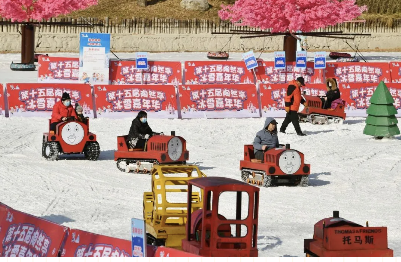Covering 23,000 square meters, this year's festival features popular activities from previous years, such as snow drifting, sledding, the ice castle, Longtan Train, snow tanks, high-speed ice slides, ice sleds, ice bicycles, and simulated dog sledding. New additions include innovative ice sports like snow drifting, high-speed ice tracks, and wind-powered snowballs, further enhancing visitors' ice and snow experiences.