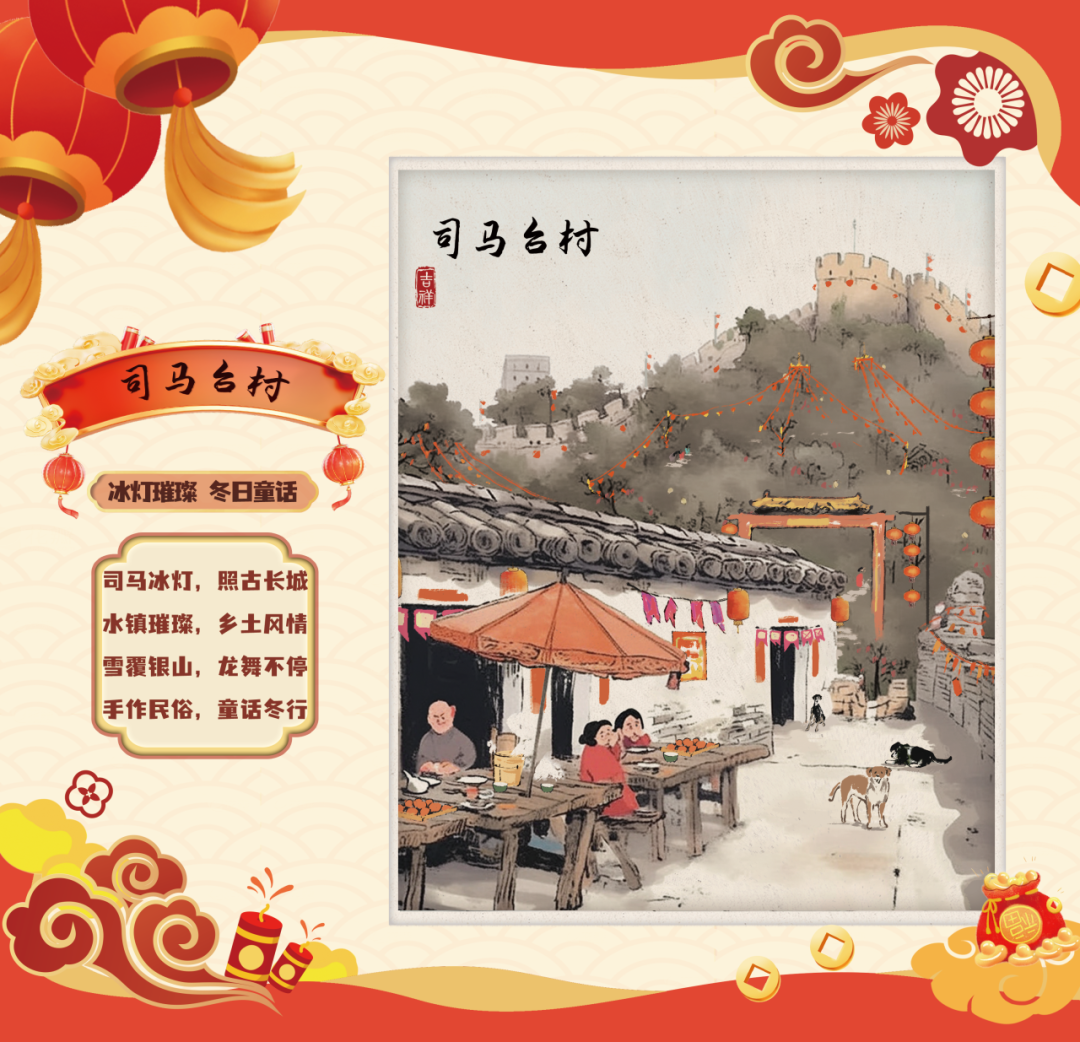 In winter, the Great Wall-Badaling stands majestically under a blanket of snow, while Shixia Village at its foot is cradled by verdant mountains, exuding a serene, ancient charm. The essence of the Great Wall permeates every corner of this idyllic village. During the Spring Festival, boutique homestays host themed activities, allowing you to immerse yourself in a historical journey and experience the festive traditions of a Ming Dynasty marketplace—a unique blend of culture and celebration.