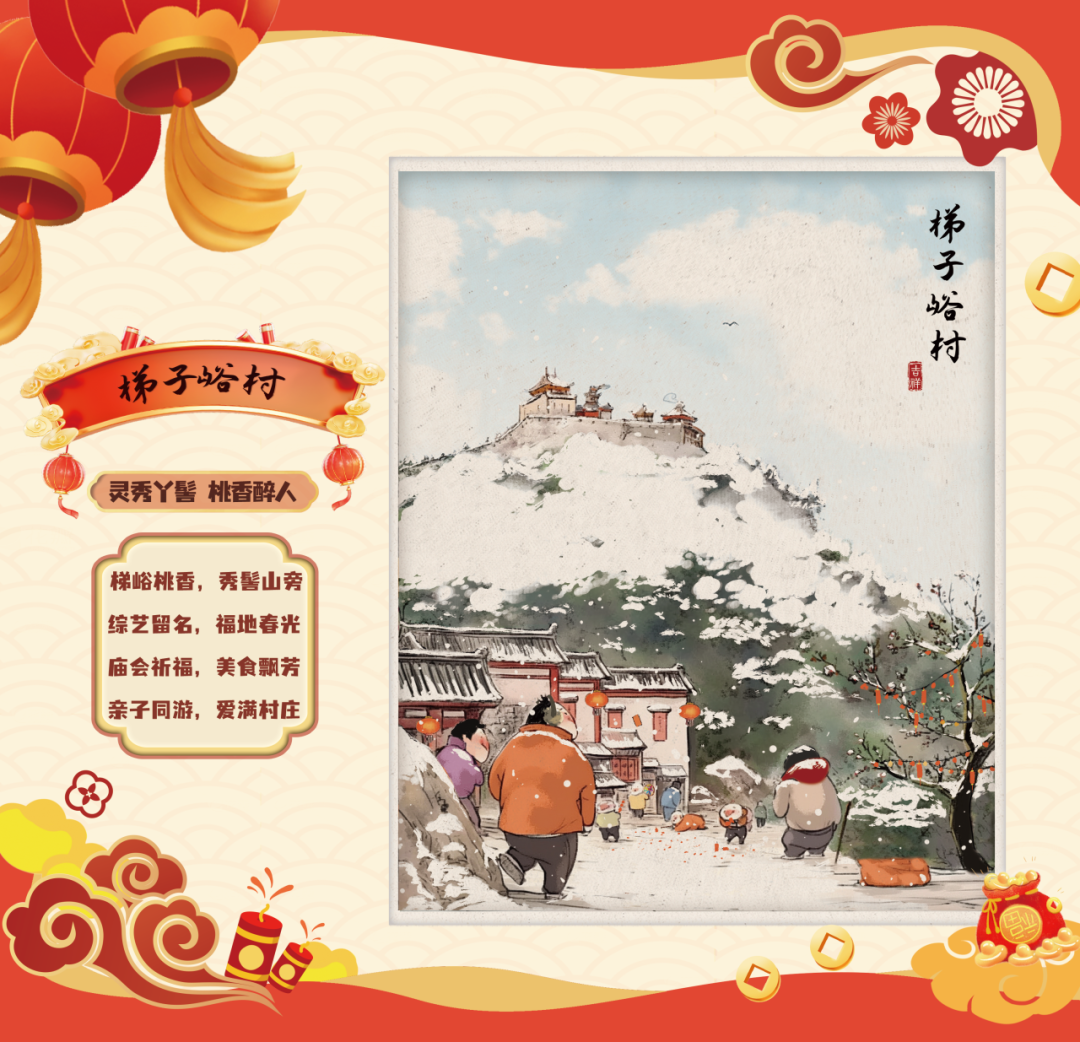 Founded during the Ming Dynasty, Tiziyu Village in Pinggu boasts stunning natural scenery and thriving agricultural industries. Entering the village feels like stepping into a hidden paradise, where Chinese and Western cuisines blend harmoniously, and the aroma of peach tea and peach wine delights the senses. During the Spring Festival, the nearby Yaji Mountain Scenic Area hosts a temple fair featuring activities such as strolling through "Blessed Land," crossing the "Bridge of Fortune," and walking the "Path of Prosperity," bringing blessings to your New Year celebrations.