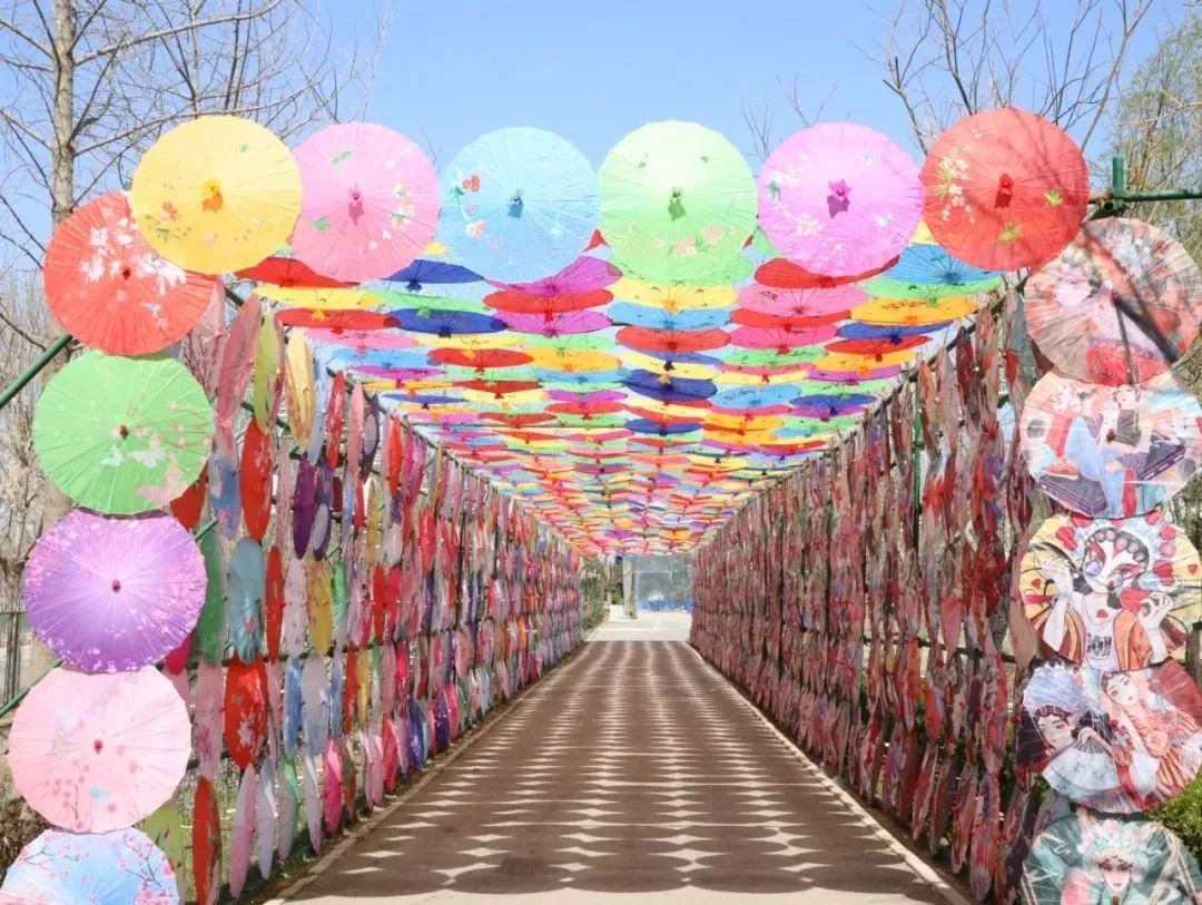 During the "Peony Flower Festival," the main pathway of the park is also adorned with Chinese-style oil-paper umbrellas and an intangible cultural heritage kite exhibition area. In addition, there are parent-child entertainment areas and local snack areas.