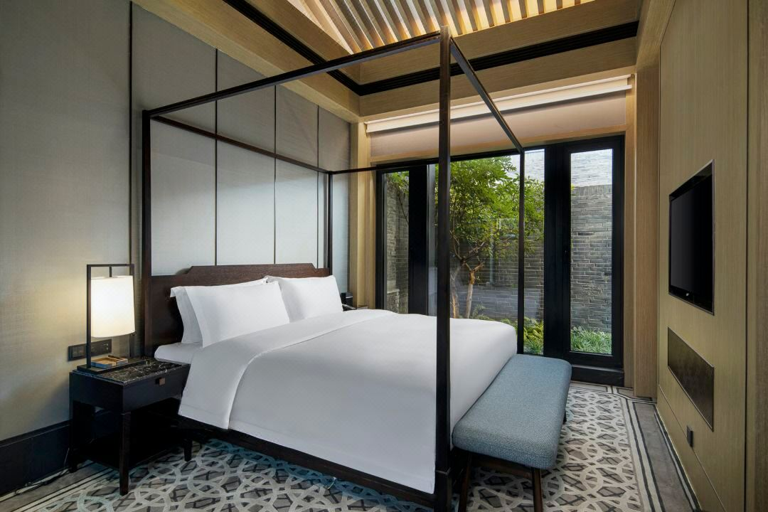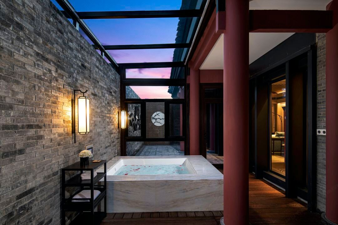 The hotel curates a series of culturally immersive activities that blend nature, tradition, and local charm. Guests can step back in time with guided tours of Ming- and Qing-style courtyard architecture, practice calligraphy in the lobby, or learn Tai Chi amid the mountain breeze. Nestled against rolling hills and flowing streams, the hotel's classical courtyards and landscaped gardens create a poetic ambiance where one can listen to babbling brooks and swaying ancient trees. At the foot of the Great Wall and along the Gui He (River), the hotel harmonizes with the natural beauty of the World Horticultural Expo while celebrating the artistry of classical Chinese architecture.