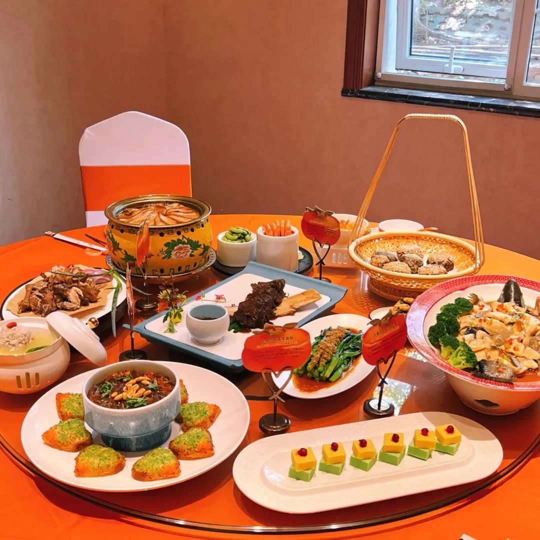 A must-try is the Fangshan Intangible Cultural Heritage Banquet, featuring dishes such as Dao Kou roast chicken, which is tender and flavorful, and "Shangfang Mountain Chinese Toon Almond Prawn," with fresh prawns wrapped in the fragrance of Chinese toon leaves. It is highly recommended to try the sweet and mellow chrysanthemum white wine made using a national intangible cultural heritage brewing technique.