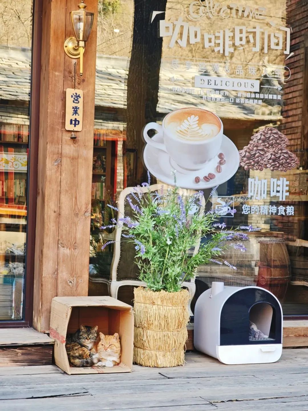A literary space with resident cats, where you can order an osmanthus latte, curl up in a rattan chair, and be surrounded by the aroma of coffee and the soft presence of cats.