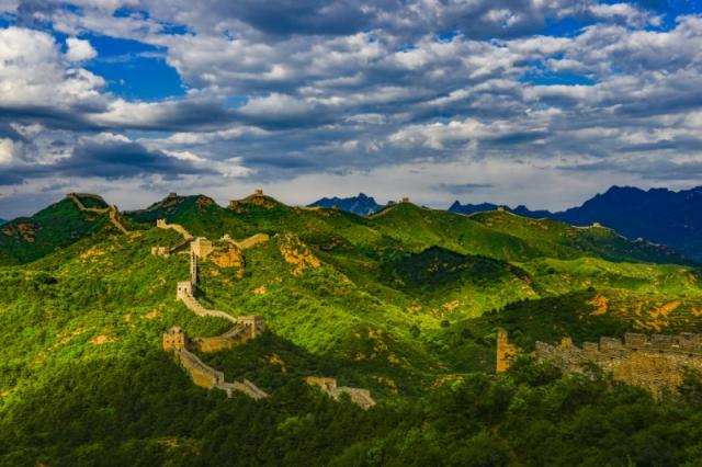 Jinshanling Great Wall is situated on Daxiao Jinshanling (Big and Small Jinshanling) in Bakeshiying, Luanping, Chengde, Hebei Province. Originally built in 1368 under General Xu Da during the Ming Dynasty, it features 5 passes, 67 watchtowers and 3 beacon towers. Its "Three Unique Features" (三绝) include the Kylin Screen Wall (麒麟影壁墙), Inscribed Brick Wall (文字砖墙), and General Tower Defense System (将军楼综合防御体系).