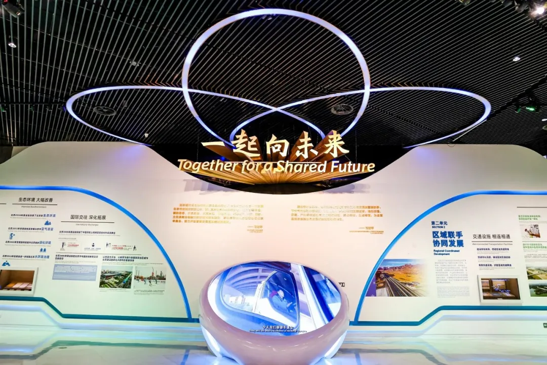 The basic exhibition hall is themed "Dual Olympic City: Together For A Better Future" with an exhibition area of 8,604 square meters, divided into three parts.