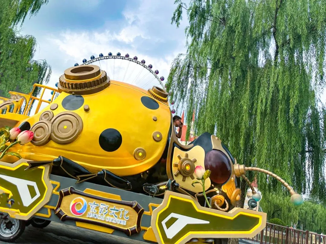 In the Mechanical Fantasy Steam Beetle Parade, the giant mechanical beetle has a 3-meter-tall metal body, with blinking red eyes, shaking the ground with every step, making steampunk enthusiasts scream!