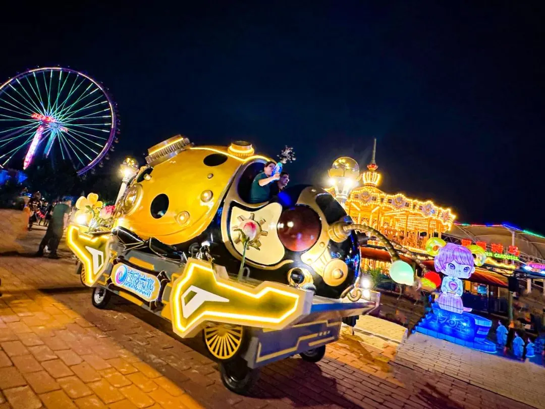 "Dimensional Night Tour: Fantastic Light Journey" creates a fantasy world, with seven main themed areas stunningly displayed. Hardcore machinery collides with cute healing, Chinese Style reigns supreme and ignites the whole scene: "Cool Play Opening" in full steam punk style, "Cute Creatures Night Walk" bursting with cuteness, "Guochao Baixi" full of heritage, becoming a popular spot for check-in photos.