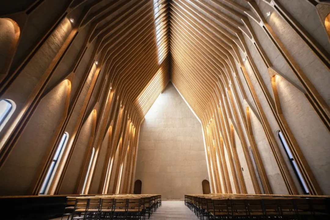 The white church (actually a lecture hall) inside the academy is a landmark building and a popular spot for taking photos. The simple architectural outline is elegant and well-designed, like a clean and elegant canvas. The interior space has a soaring height of 23 meters without columns, with geometric lines arranged in an orderly manner. The architecture and light blend here, creating a very textured beauty. Currently, the 7th "Excavation & Discovery - New Artists of Chinese Oil Painting Exhibition (挖掘•发现——中国油画新人展)" is on display, with the exhibition running until September 7th.