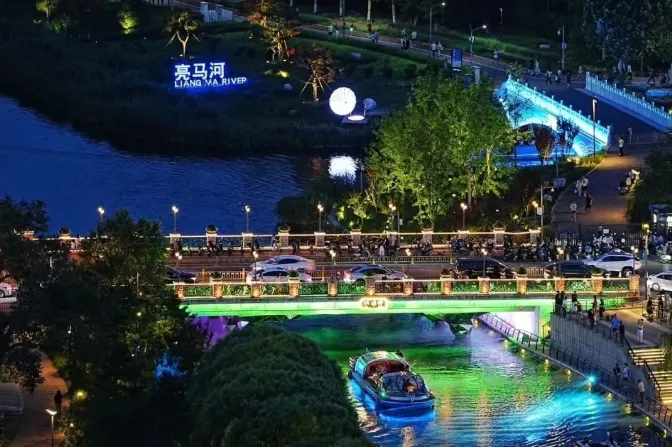 Liangma River International Customs Waterfront connects Sanlitun, Yansha, Solana, Chaoyang Park, and other attractions, with a variety of restaurants, cafes, and pubs along the way. Here, you can take a walk to feel the breeze and dazzling lights of Beijing at night, or board a boat at the Solana Pier to experience a trendy boat tour.