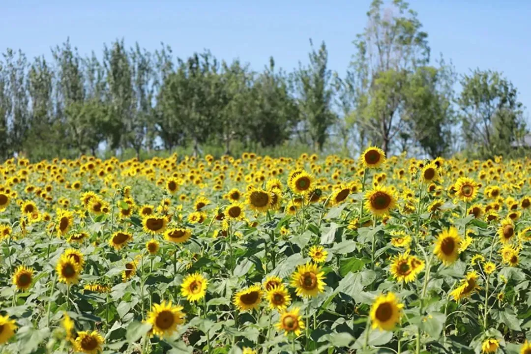 Stepping into the "Riverbank Flower Garden," you are instantly surrounded by endless golden hues. Under the sunlight, tall sunflowers stand upright, their golden flower heads all facing the sun, creating a magnificent "golden sea." With the breeze blowing, the waves of flowers roll, creating a spectacular view.