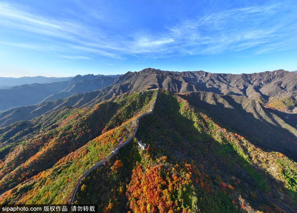 The Badaling section of the Great Wall is a cultural heritage site of China and part of the UNESCO World Heritage List. In autumn, the mountains are covered with red leaves, perfectly complementing the ancient wall. Visitors here can appreciate China's great ancient military defense project while enjoying the magnificent autumn scenery.