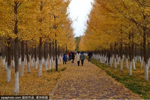 The fallen yellow leaves cover the ground, decorating the entire road like a "golden avenue." Walking along it is especially pleasant, making people can't help but stop and linger.