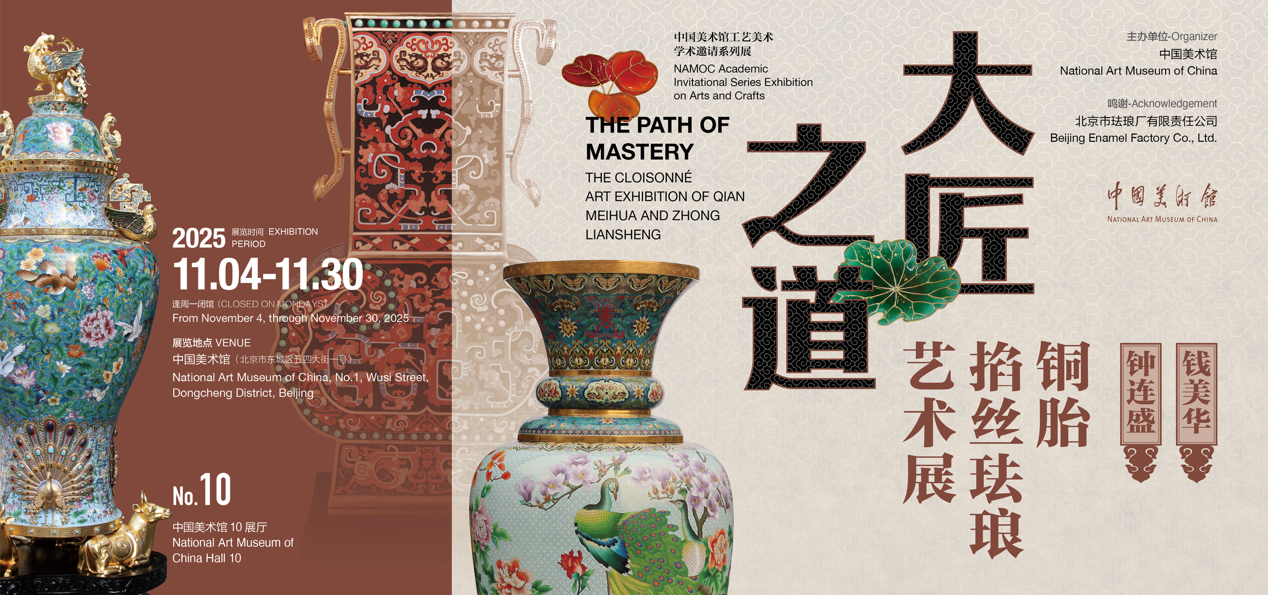 Hosted at the National Art Museum of China, this exhibition is part of its academic series for arts and crafts. It features nearly 50 cloisonné works by masters Qian Meihua and her apprentice Zhong Liansheng, showcasing the development of new China's cloisonné art.